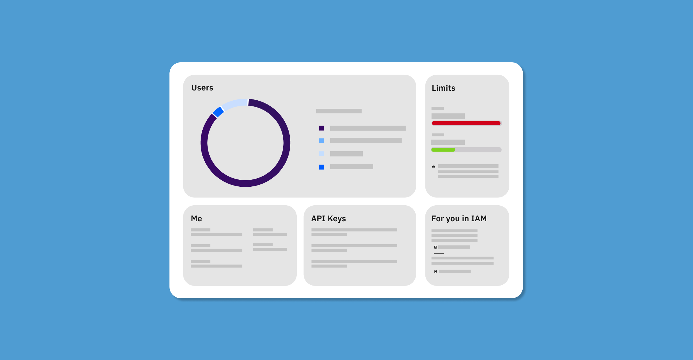 IBM’s Identity and Access Management team focuses on the security and safety of an organization’s Cloud Account. Its overview landing page was in need of a redesign. We had heard from users that it was “not useful” and “a waste of space”. Not only did we want to give the page a new and improved look with IBM’s newest design system, Carbon 10, but we also wanted to show our users a more useful data dashboard around their account.
